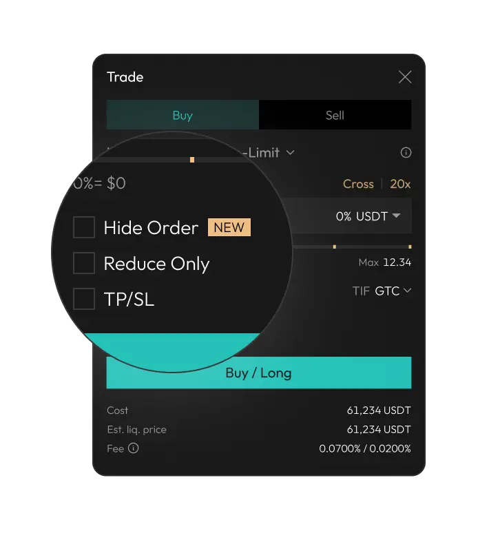 Hidden orders let you place limit orders that stay fully hidden from the public order book —